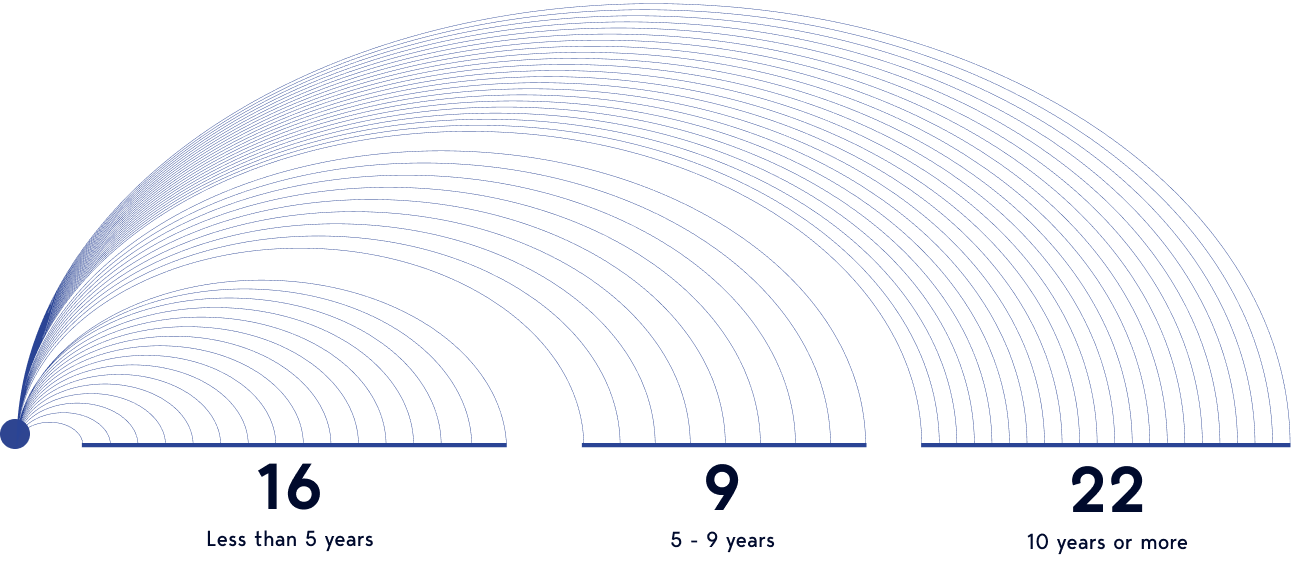 When we say we invest for the long term, we mean decades. One of our founders expressed a strongly held view that continues to represent the essence of our investment philosophy today: Compound growth x time = investment nirvana. So, nearly half the stocks we hold in a typical global portfolio have been held for more than a decade.